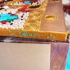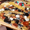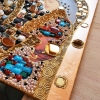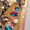 A special accent of the composition is the semi-precious stones skillfully woven into the painting: agate, carnelian, amber, aventurine, mother-of-pearl, variscite, red coral, rose quartz, pearl, malachite, citrine, turquoise. Their bright colors and textures harmoniously blend with the copper and golden elements.