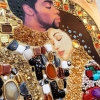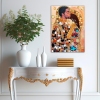 The original painting is inspired by Gustav Klimt's famous work «The Kiss», but executed in a completely new, modern style. The canvas depicts a tender scene: a man and a woman, their heads leaning towards each other, eyes closed. They seem to dissolve into a moment of deep intimacy and love. The man gently embraces the woman, and she presses against him, conveying a sense of warmth and trust.