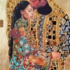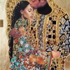 The original painting is inspired by Gustav Klimt’s famous «The Kiss», but executed in a completely new, modern style. The piece depicts a tender scene: a man and a woman with their heads inclined toward each other, eyes closed. They seem to dissolve into a moment of deep intimacy and love. The man gently embraces the woman, and she leans into him, conveying a sense of warmth and trust.