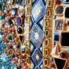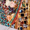 A distinctive feature of the composition is the semi-precious stones masterfully woven into the painting: red coral, turquoise, tiger’s eye, carnelian, cat’s eye, jade, aquamarine, amethyst, agate, amber, mother-of-pearl, hematite, rose quartz, onyx, malachite, lapis lazuli, ametrine, and jasper. Their vivid colors and textures harmoniously blend with the golden elements.