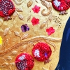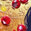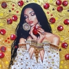 Her luxurious dress, embroidered with semi-precious stones and gold, creates an impression of grandeur and beauty. The pomegranates inlaid with red corals and rhinestones add bright accents, symbolizing not only physical beauty but also inner strength and passion. The golden background of the painting creates an atmosphere of holiness and divine light, highlighting the significance of Eve's figure.
