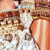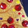 "Eve." The original painting is made with acrylic paints, textured contours, and relief. It is adorned with semi-precious stones: red coral, garnet, agate, pearl, amber, hematite, sardonyx, jasper, carnelian.