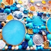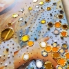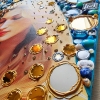 Acrylic paints, cotton canvas on a wooden stretcher, semi-precious stones (turquoise, lapis lazuli, agate, rose quartz, cacholong, carnelian, onyx, cat's eye chrysoberyl, moonstone, pearl, mother of pearl), crystal rhinestones