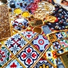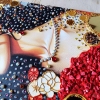 Materials: acrylic paints, relief, gold leaf, Spanish mosaic (brought from Barcelona), mirrored elements, gold and mirrored mosaic, shimmering crystal rhinestones.