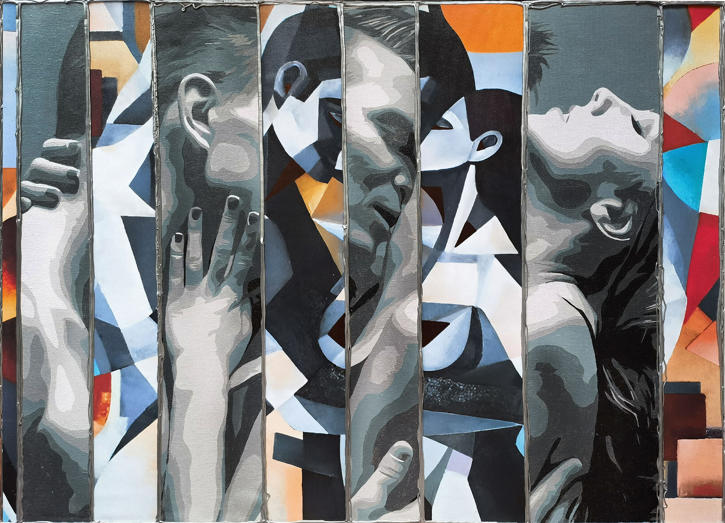 Cubist shapes, like shards of reality, convey the multifaceted and complex nature of the experience. We see not just a couple, but a combination of emotions, thoughts, and sensations woven into a single pattern. It is an attempt to capture not only the external form but also the inner energy and dynamic of the feeling. Despite the apparent fragmentation, these geometric shapes reveal the same closeness, the same connection as in the first image.
