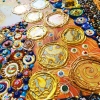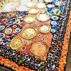 The painting’s special charm is enhanced by semi-precious stones, each carrying a piece of natural magic. Agate, haliotis, mother-of-pearl, lapis lazuli – their iridescence creates a lively, pulsating texture. Copper leafing, woven into the abstract ornament, adds depth and sophistication, making the piece truly unique.