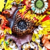The bright, sunny sunflowers catch the eye with their unusual texture. Irina chose not to alter the colors of the found objects, preserving their original beauty. This allows us to see each element not just as material, but as a part of someone's life, someone's story.