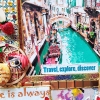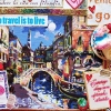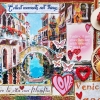 This bright and cheerful painting is a true celebration of color, travel, and inspiration, created using mixed media collage techniques. The work is built up in layers, in the style of a scrapbook album, so that each element seems lovingly glued on and holds its own story. It transports the viewer to the sunny atmosphere of Venice, where canals, bridges, and cozy streets come together into a cohesive and lively visual narrative.
