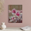 Beneath it, in the chill of early dawn, small forest spirits are said to play, their eyes holding the clear, cold depth of a northern lake. More than a simple landscape, this piece is a quiet secret - a unique fusion of graphic transparency and the rich texture of oil paint. It holds the crisp bite of lingering snow in perfect balance with the tender bravery of the season's first petals.
