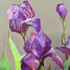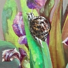 The true protagonist of this artwork is silence itself – the deep, warm silence of a white night in a forgotten corner of a garden. Here, in the deep shade, lush irises in shades of violet bloom among the tall grass.