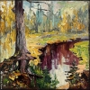 This evocative landscape invites you to step into the quiet, sun-dappled woods of the artist's homeland. It's a place of hidden wonders: a river, fed by secret springs, flows with water the color of rich, dark tea - almost as if you're looking into a delicate cup, not a forest stream.