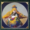 The painting "Fairy" exudes an enchanting and whimsical aura, presenting an ethereal figure adorned in vibrant, flowing robes of golden yellow, deep blue, and warm orange. The character, with an expressive gaze and a gentle smile, holds a flute, symbolizing harmony and creativity. Her intricate headdress and vivid attire, filled with textured brushstrokes, give her a regal yet otherworldly presence.