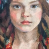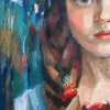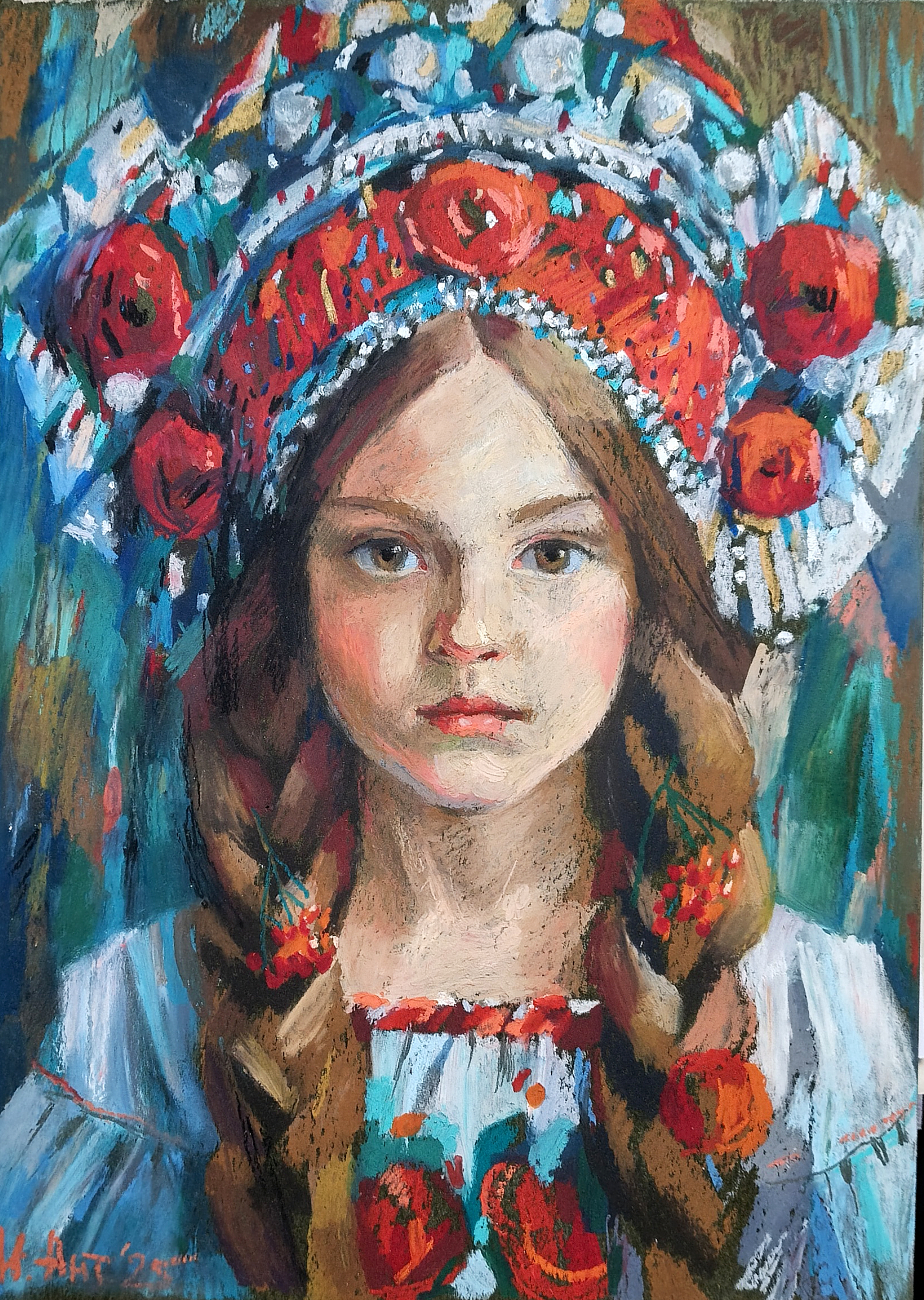 The painting "Girl in a Red Kokoshnik." A historical, traditional image from the past. Created in the style of realism and symbolism.