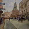 Eduard Panov's painting «Old Moscow» offers an atmospheric and nostalgic view of the bustling Nikolskaya Street at the beginning of the 20th century. The artist masterfully recreates the spirit of pre-revolutionary Moscow, combining the dynamics of street life with historic architecture.