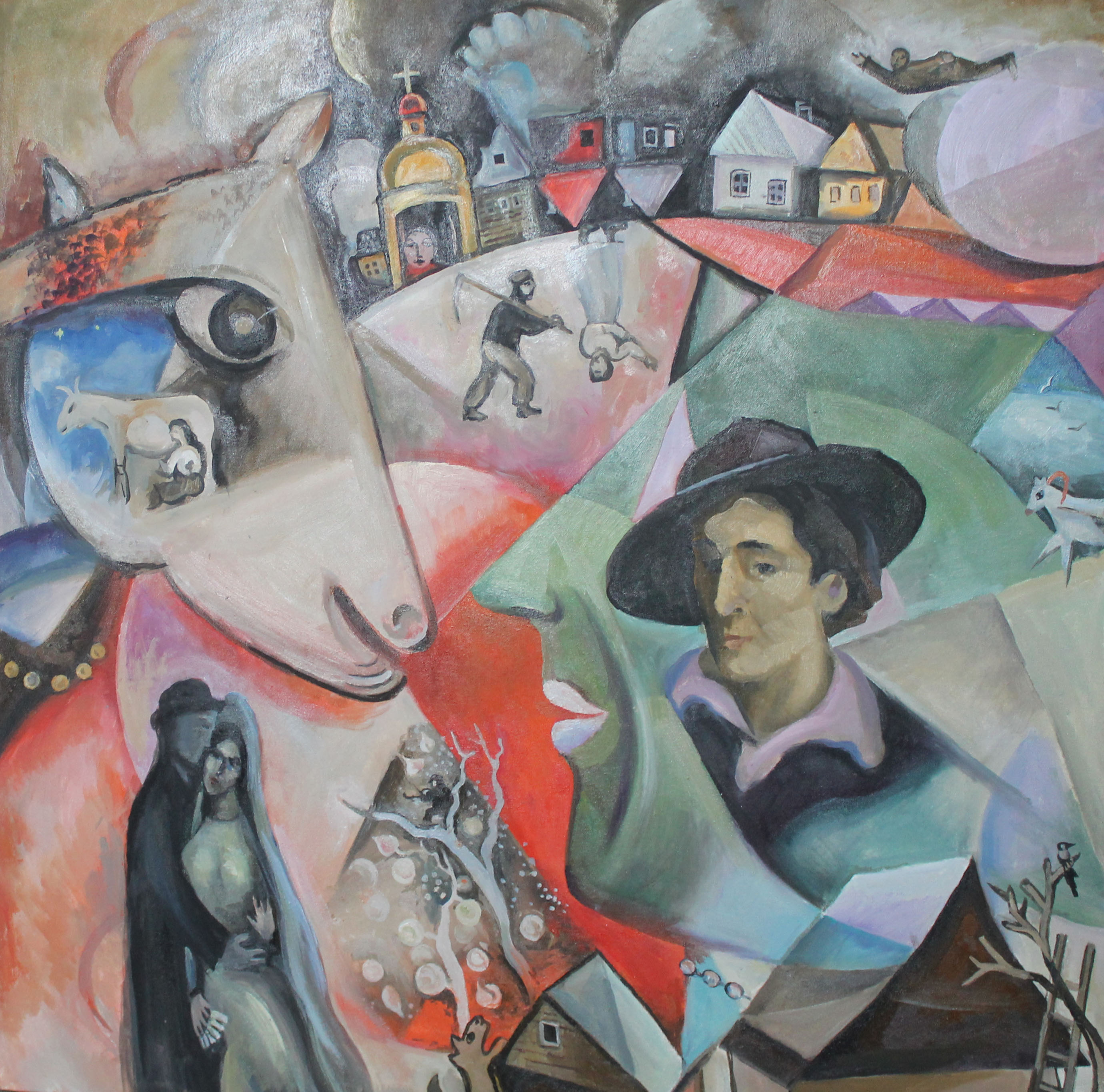 The naive pure creativity of Chagall made me pay attention and create a work where this magnificent artist is recognizable.